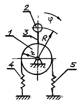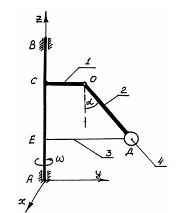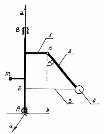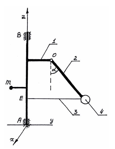 Масса барабана 3: М=10 кг, барабан считать однородным цилиндром. Масса кривошипа 1 (однородный стержень), m=3 кг,