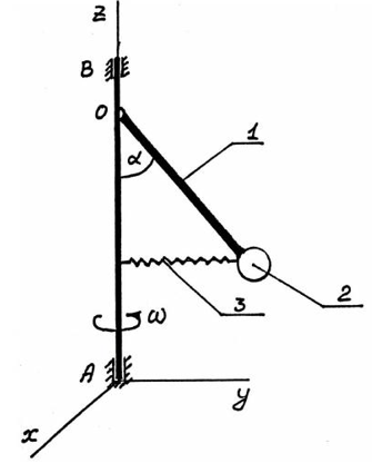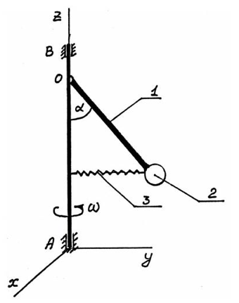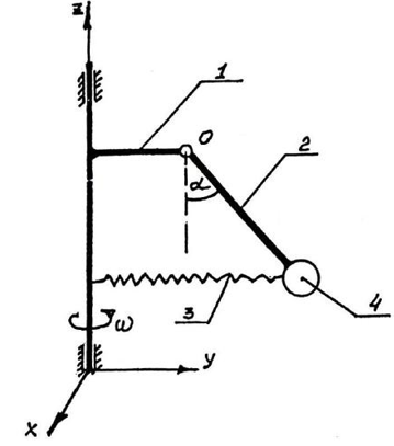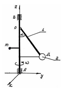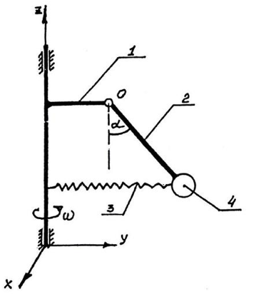 жесткость пружины 4: с=600 Н/м, ОВ=АB=2г=0.5 м, коэффициент сопротивления демпфера 5: μ=500 Н•с/м