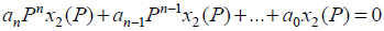 Из приведенных ниже выражений выберите характеристическое уравнение САУ, если x1(t), x2(t)- воздействия на входе и выходе САУ; ai, bi, - постоянные коэффициенты; P - оператор преобразования Лапласа.