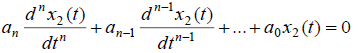Из приведенных ниже выражений выберите дифференциальное уравнение свободного движения САУ, если x1(t), x2(t)- воздействия на входе и выходе САУ; ai, bi, - постоянные коэффициенты; P - оператор преобразования Лапласа.