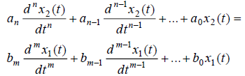 При подаче на вход некоторого элемента САУ воздействия x1(t) величина на выходе x2(t) изменяется в соответствии с дифференциальным уравнением вида Определите нули передаточной функции САУ.