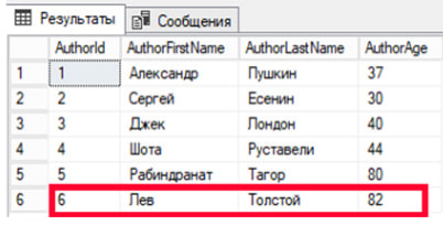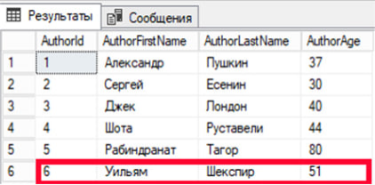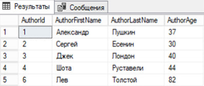 Для примера в таблицу внесены следующие данные (фрагмент таблицы).