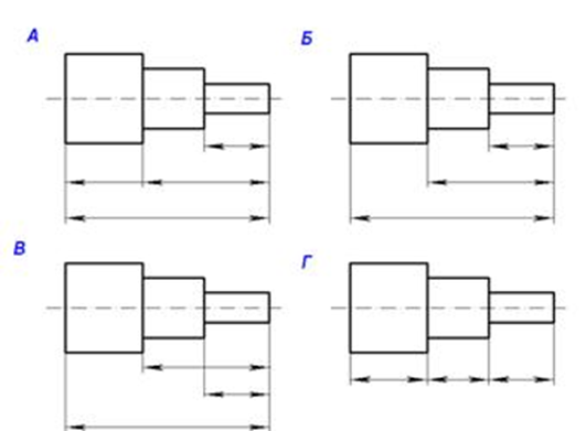 Укажите букву рисунка, на котором показан чертеж с правильно проставленными линейными размерами