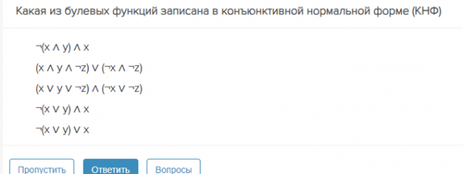 Ответ на вопрос по дискретной математике №26883: Какая из булевых функций записана в конъюнктивной нормальной форме (КНФ) -(xлy)лX (хлул -z) V (-хл-Z) (xvyv-z)A(-xv-z) (xvy)Ax (xvy) vx Какая из булевых функций записана в - Ответ на вопрос по дискретной математике №26883Какая из булевых функций записана в - Ответ на вопрос по дискретной математике №26883