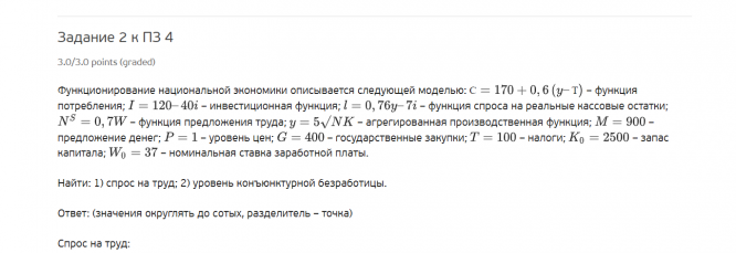 Ответ на вопрос по экономике №15696: Функционирование национальной экономики описывается следующей моделью: – функция потребления; – инвестиционная функция; – функция спроса на реальные кассовые остатки; – функция предложения труда; – агрегированная производственная функция; – предложение денег; – уровень цен; – государственные закупки; – налоги; – запас капитала; – номинальная ставка заработной платы. Найти: 1) спрос на труд; 2)Функционирование национальной экономики описывается - Ответ на вопрос по экономике №15696Функционирование национальной экономики описывается - Ответ на вопрос по экономике №15696
