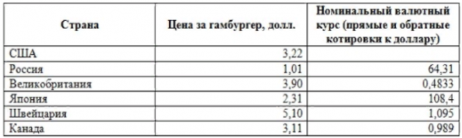 Изучите приведенную таблицу с данными по разным странам (см. таблицу ниже). Сделайте вывод о том, валюта такой страны является наиболее недооцененной?