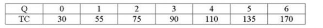 Фирма осуществляет деятельность на рынке совершенной конкуренции, реализуя продукцию по цене, равной 30 ден. ед. Зависимость общих издержек TC от изменения объемов производства Q отражена в таблице
