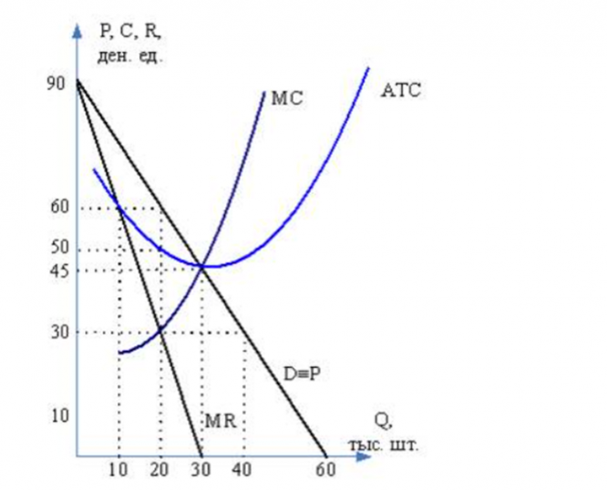 На рисунке отражена модель доходов и издержек организации-монополиста.