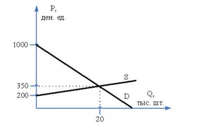 На рисунке отражены графики функций спроса и предложения на рынке.