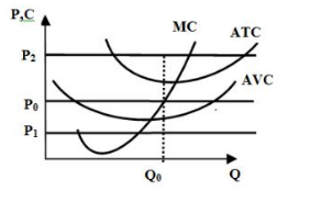 Фирма реализует объем продукции Q0 (см. график). При какой цене сложившейся на рынке фирма будет получать прибыль:
