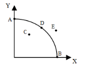 Комбинация производства двух товаров, при которой увеличение объема выпуска одного товара возможно без сокращение объема выпуска другого, представлена точками: