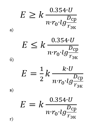 Напряженность электрического поля (максимальное значение) вокруг расщепленных проводов определяется по выражению ...