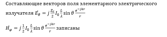Составляющие векторов поля элементарного электрического излучателязаписаны
