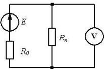 Определить показания вольтметра в согласованном режиме, если Е = 40.