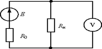 В линейной электрической цепи постоянного тока E = 10 В, R0 = 2,5 Ом, Rн = 2,5 Ом.Показание вольтметра составит … В.