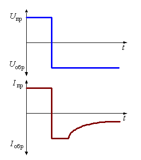 Последовательность переходного процесса переключения импульсного диода при воздействии прямоугольного импульса