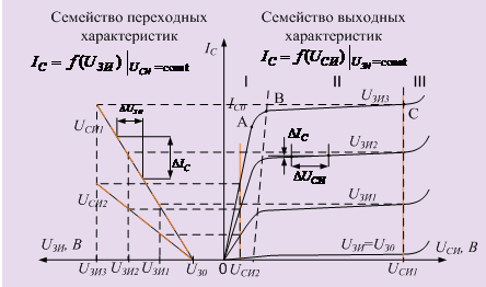 На семействе выходных характеристик полевого транзистора начальные участки (О-А) получили название