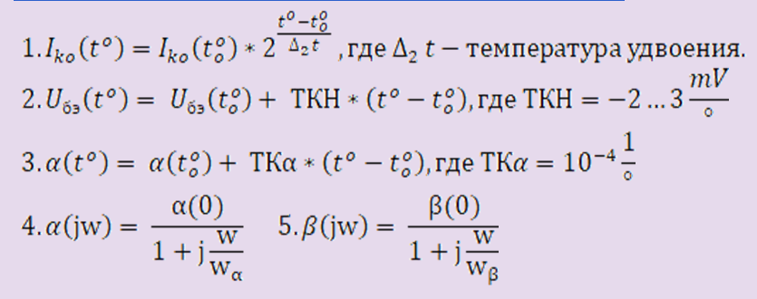 Зависимость входного напряжения биполярного транзистора от температуры выражается формулой