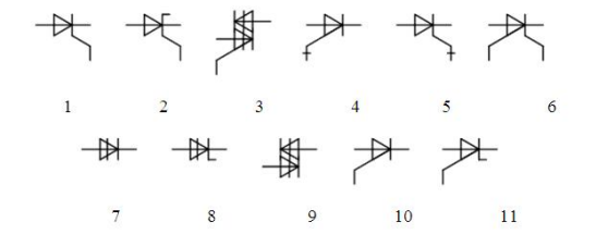 Среди представленных условных графических обозначений тиристоров укажите соответствующее тетродному, запираемому в обратном направлении.