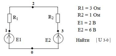 Ответ на вопрос по электротехнике №1026749: R1 = 3 Ом R2 = 1 Ом E1 = 2 B E2 = 6 B Найти | U 3-0 | R1 = 3 Ом R2 = 1 Ом E1 = 2 B E2 = 6 B Найти | U - Ответ на вопрос по электротехнике №1026749R1 = 3 Ом R2 = 1 Ом E1 = 2 B E2 = 6 B Найти | U - Ответ на вопрос по электротехнике №1026749