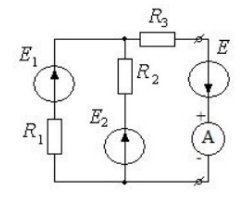 Дано: R1 = 4 Ом, R2 = 12 Ом, R3 = 1 Ом, Е1 = 8 В, Е2 = 40 В. Определить ЭДС Et чтобы ток амперметра был равен нулю.