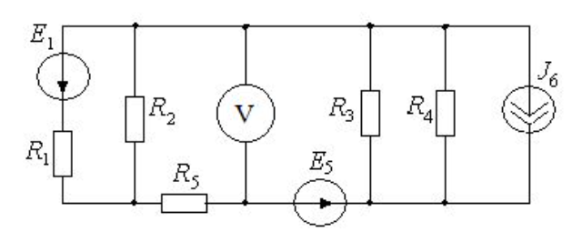 Сколько необходимо уравнений, составленных по первому закону Кирхгофы, для схемы, изображенной на рисунке (прибор - идеальный).