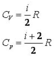 Укажите формулы, определяющие молярную теплоемкость идеального газа при постоянном объеме и постоянном давлении- Теплоемкость при постоянном давлении