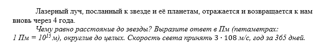 Ответ на вопрос по физике №924796: Лазерный луч, посланный к звезде и ее планетам, отражается и возвращается к нам вновь через 4 года. Лазерный луч, посланный к звезде и ее планетам, - Ответ на вопрос по физике №924796 Лазерный луч, посланный к звезде и ее планетам, - Ответ на вопрос по физике №924796