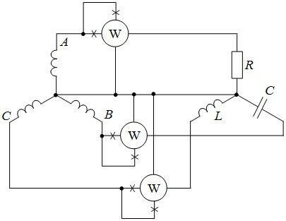Определите активную мощность трехфазной системы (то есть сумму показаний всех ваттметров).