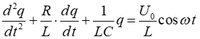 4.24. В колебательном контуре свободные незатухающие колебания заряда конденсатора описывает уравнение…- 1)