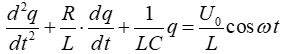 4.26. В колебательном контуре вынужденные колебания заряда конденсатора описывает уравнение…- 1)
