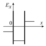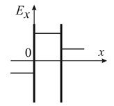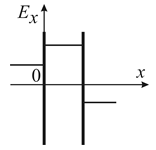 1.15. Электрическое поле создано двумя бесконечными параллельными заряженными плоскостями. На рисунке дана зависимость изменения потенциала φ этого поля от координаты x вне пластин и между пластинами. Какой рисунок правильно отражает зависимость проекции напряженности поля Ex?