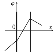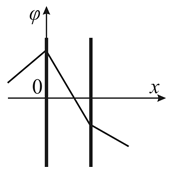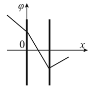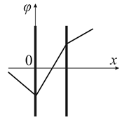1.33. Электрическое поле создано двумя бесконечными параллельными заряженными плоскостями. На каком рисунке показана зависимость проекции напряженности поля Ex от координаты x вне пластин и между пластинами?