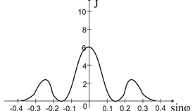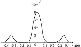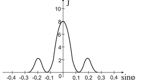 1.43. Одна и та же дифракционная решетка освещается различными монохроматическими излучениями с разными интенсивностями. Какой рисунок соответствует случаю освещения светом с наименьшей длиной волны? (J – интенсивность света, φ – угол дифракции).- 1)