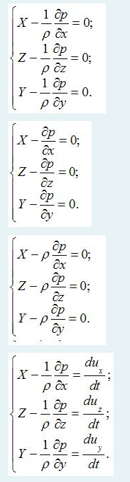 Система дифференциальных уравнений равновесия жидкости имеет следующий вид