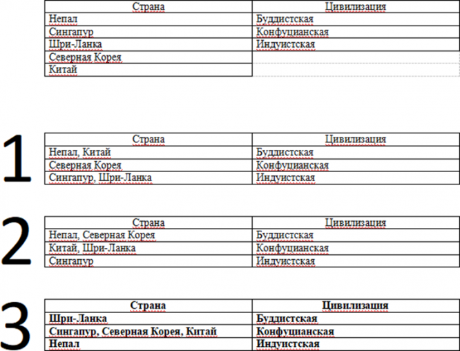 Ответ на вопрос №24042: Вам предложили провести совместную исследовательскую деятельность с аспирантом N по теме «Восточные модели государственного управления». Одной из задач для Вас стало грамотное распределение стран по цивилизациям, к которым они относятся. У Вас на руках такие неотработанные данные:Составьте грамотную таблицу. 1 2 3 Вам предложили провести совместную исследовательскую деятельность с - Ответ на вопрос №24042Вам предложили провести совместную исследовательскую деятельность с - Ответ на вопрос №24042
