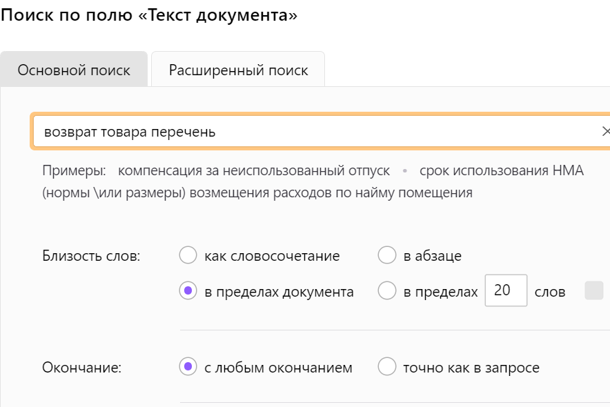 В результате обработки запроса в карточке поиска (см. - Ответ на вопрос по ИТвЮД №238668