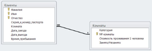 - Клиент может занимать несколько комнат, но в комнате может быть зарегистрировано несколько клиентов