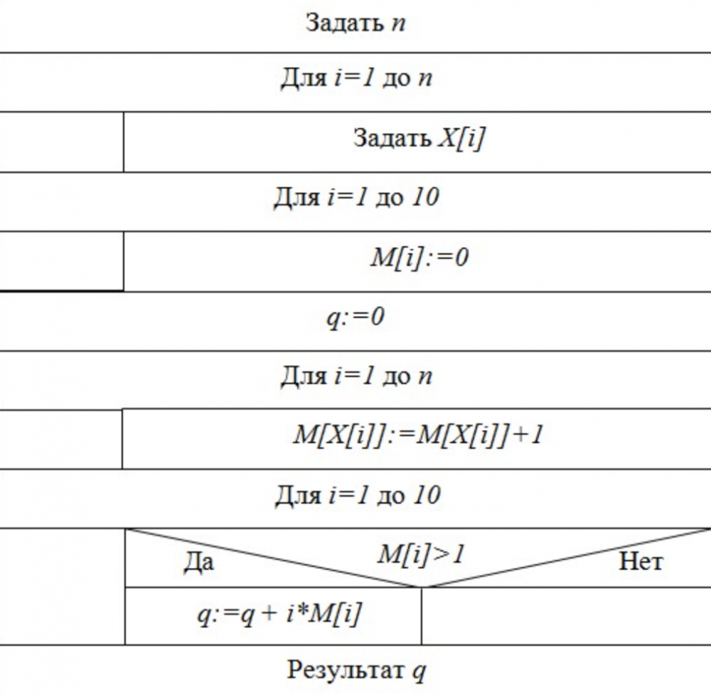 Известно, что элементами массива X могут быть целые числа от 1 до 10.