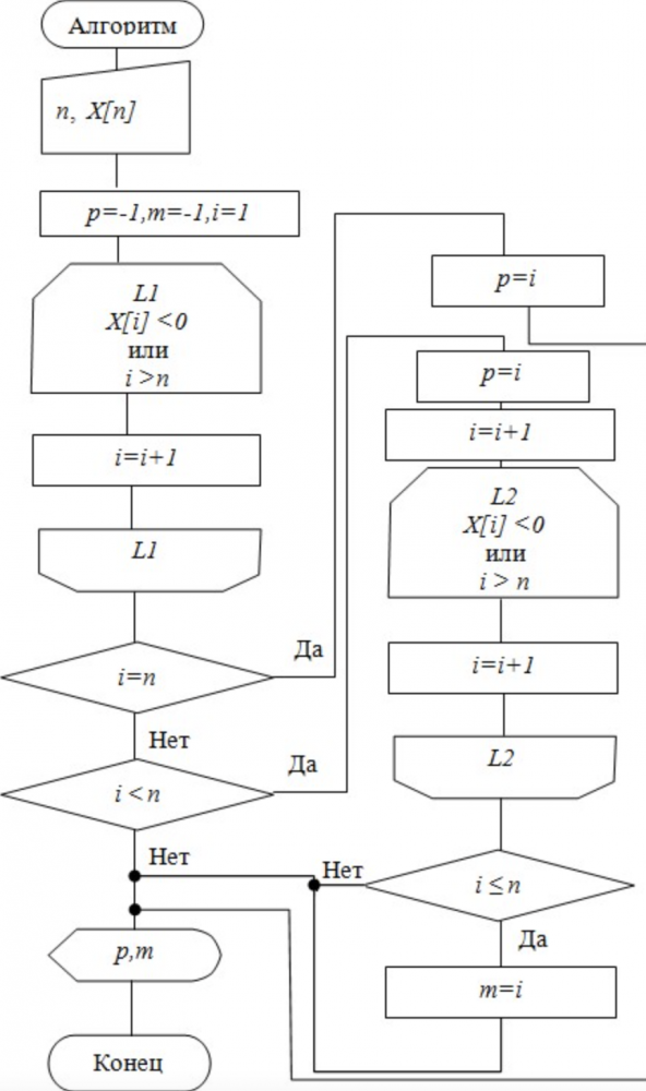 Чему будут равны переменные p и m после выполнения алгоритма при n=9, X={3;-1;2;7;5;1;-6;10;0}?