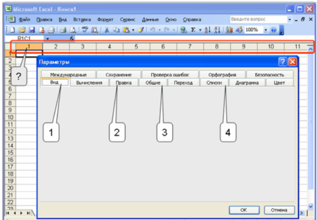 В заголовках столбцов вместо букв отображены цифры. Какой вкладкой окна «Параметры» следует воспользоваться для восстановления отображения букв?