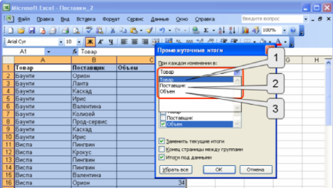Ответ на вопрос по информатике №957081: Требуется быстро просуммировать объемы поставок по каждому товару. Решено это сделать с использованием промежуточных итогов. Что необходимо выбрать в указанном списке? Последовательно все три значения 3 – Объем 2 – Поставщик 1 – Товар Требуется быстро просуммировать объемы поставок по - Ответ на вопрос по информатике №957081Требуется быстро просуммировать объемы поставок по - Ответ на вопрос по информатике №957081
