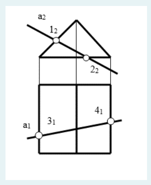 Ответ на вопрос по инженерной графике №70527: Какие из точек являются точками пересечения прямой с поверхностью призмы? нет таких точек 1222 3141 Какие из точек являются точками пересечения - Ответ на вопрос по инженерной графике №70527Какие из точек являются точками пересечения - Ответ на вопрос по инженерной графике №70527