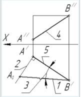 Ответ на вопрос по инженерной графике №943226: Натуральная величина отреза обозначена на чертеже цифрой: a. 2 b. 4 c. 5 d. 1 e. 3 Натуральная величина отреза обозначена на - Ответ на вопрос по инженерной графике №943226Натуральная величина отреза обозначена на - Ответ на вопрос по инженерной графике №943226
