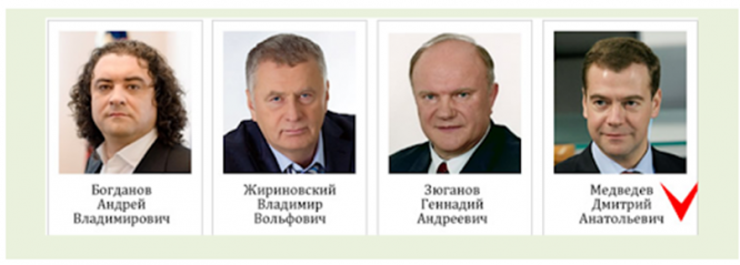 Ответ на вопрос по истории №339375: На фотографиях (см. рисунок ниже) изображены кандидаты в Президенты РФ. В каком году проходили эти выборы? 2008 г. 2018 г. 2012 г. На фотографиях (см. рисунок ниже) изображены кандидаты в - Ответ на вопрос по истории №339375На фотографиях (см. рисунок ниже) изображены кандидаты в - Ответ на вопрос по истории №339375