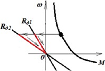 Назовите способ реализации динамического торможения электродвигателя постоянного тока последовательного возбуждения, соответствующий механическим характеристикам данного графика.