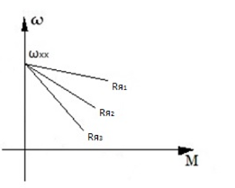 На рисунке представлено семейство статических характеристик двигателя постоянного тока с независимым возбуждением, полученные при разных значениях сопротивления якорной цепи (Rя). Какое из трех сопротивлений имеет наибольшее значение?