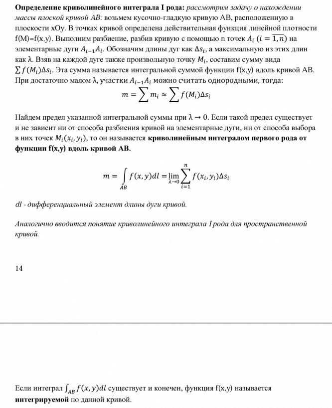 Определение криволинейного интеграла I рода - Ответ на вопрос №29253