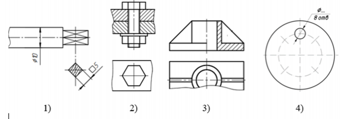 Установите соответствие между чертежом и условностями, используемых на рабочих чертежах детали