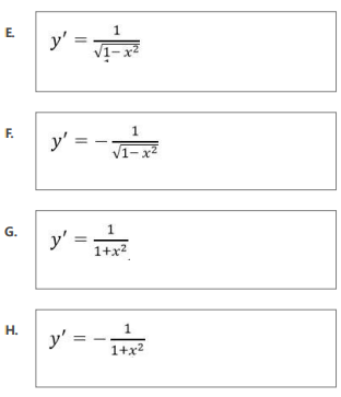 Ответ на вопрос по математике №1063987: Установите соответствие между функцией и ее производной: Тип ответа: Сопоставление• A. y = arcsin x B. y = arccos x C. y = arctg x D. y = arcctg x Установите соответствие между функцией и ее - Ответ на вопрос по математике №1063987Установите соответствие между функцией и ее - Ответ на вопрос по математике №1063987